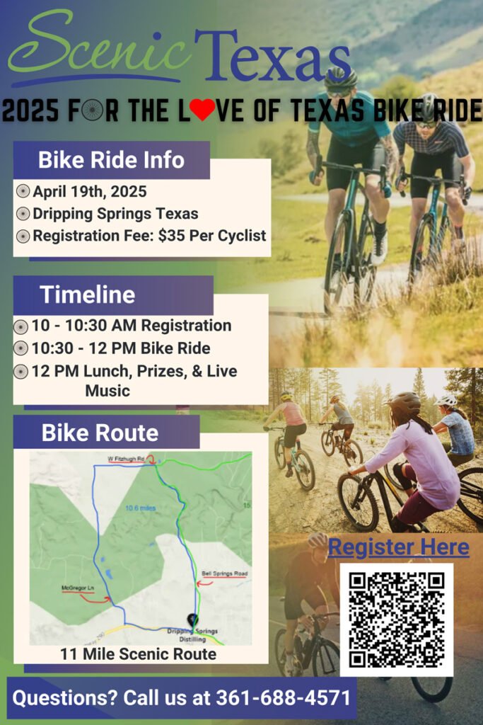 Scenic Texas is excited to host the 2025 For the Love of Texas Bike Ride in Dripping Springs.